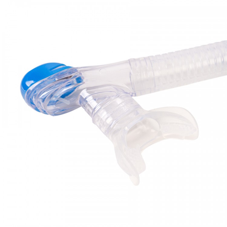 Bottom part is made of flexible silicone that allows you to quickly switch from a snorkel to a breathing device. The flexible, corrugated lower part of the tube reduces fatigue and jaw strain when holding the tube in your mouth.