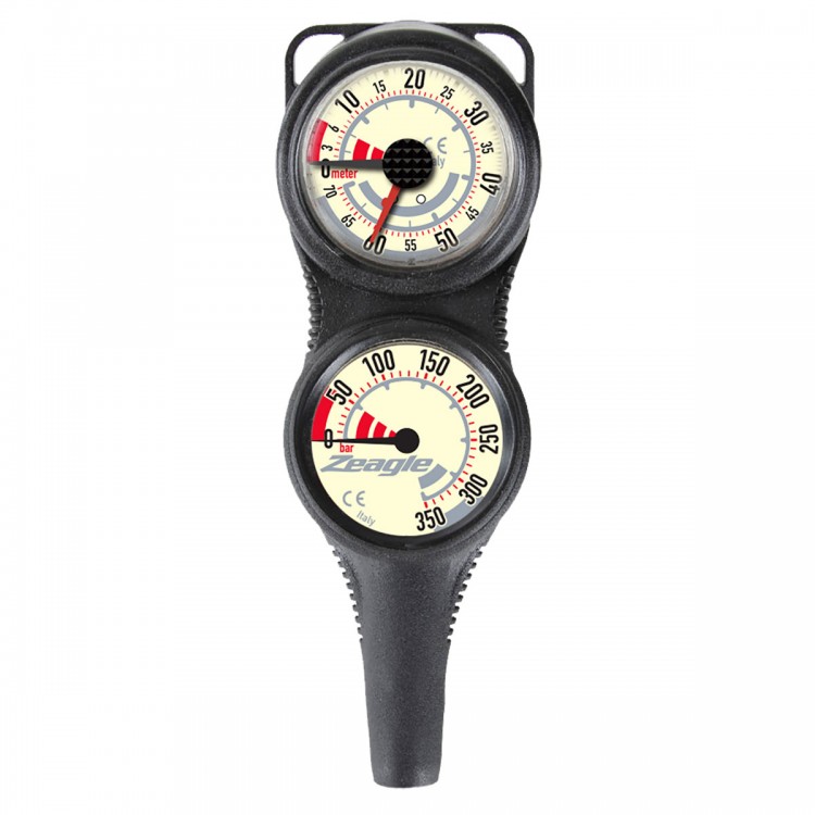 Both depth and pressure gauges are ergonomically styled and form a compact profile that’s perfect for redundant air monitoring. A one-piece brass body means it’s shock-resistant and durable enough to survive your most radical underwater adventures.