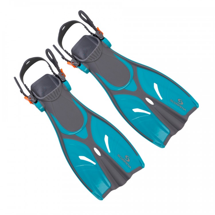 Scorpena Hawaii Junior fins are designed for kids and teenagers for snorkeling and swimming in the pool. These compact fins with open heel in bright colors will be indispensable on trips to the seas to match with Scorpena Miami wetsuits.