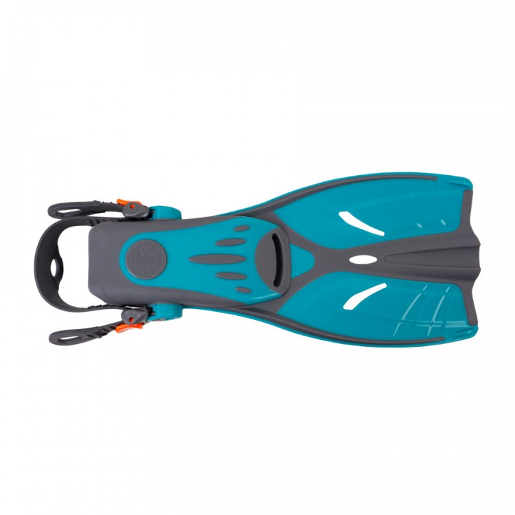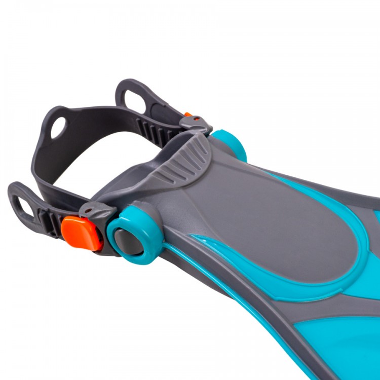 Another feature of these fins is the adjustable foot pockets strap with buckles.