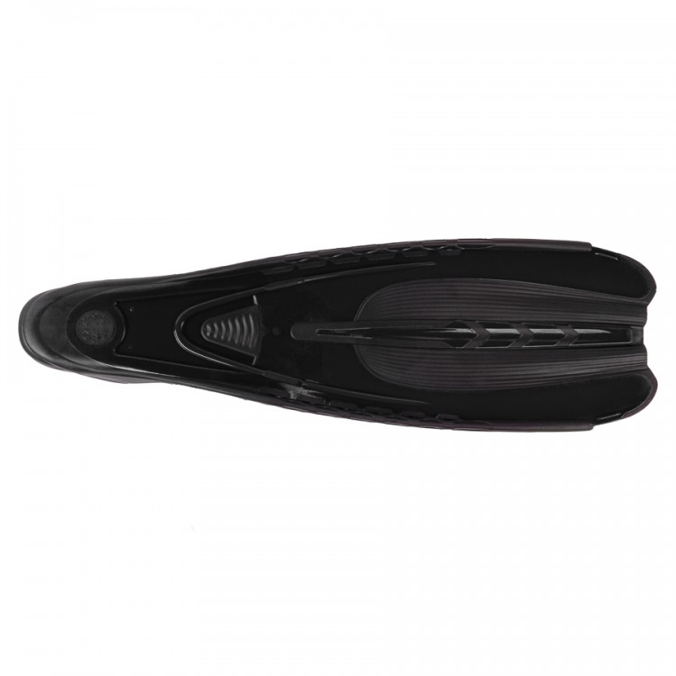 The comfort for the foot is ensured by a specially selected material for the foot pocket, which, despite its high elasticity and softness, possesses sufficient strength. There's a hole in the toe area for water drainage when putting on the fins in shallow waters and for easy removal of sand, small stones, etc. For convenient wearing, a special "tongue" is provided to help pull the foot pocket onto the heel.