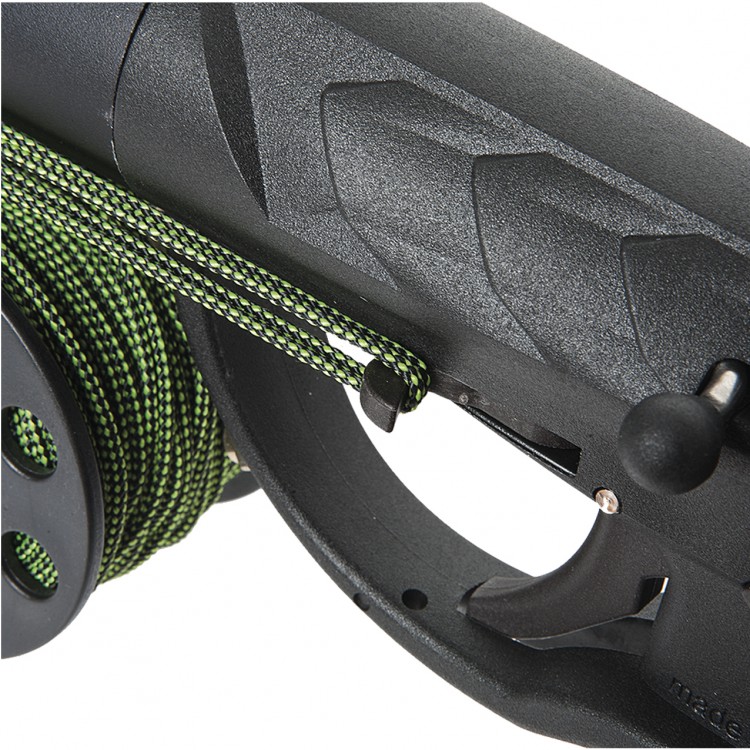 The oversized handle and the elongated butt with non-slip finish make it easy to move the speargun in water. Line release: The helical line release in lateral position allows the line to remain perfectly adherent to the barrel, simplifying the manoeuvrability and avoiding its entanglement on the depth roughness.