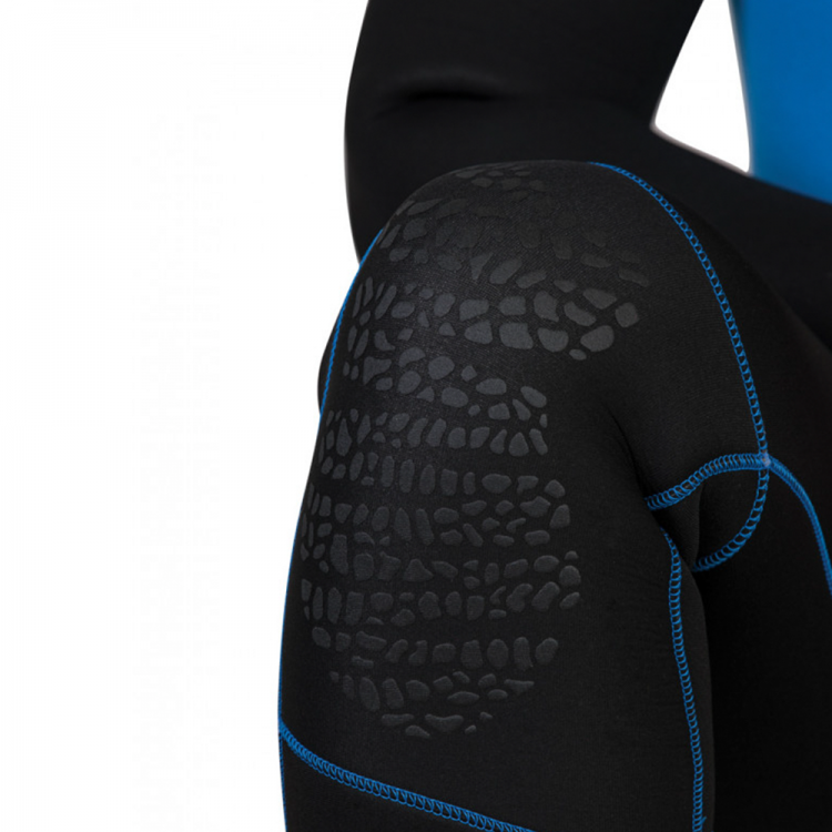 The soft Velcro top flap ensures a tight fit of the collar to the diver’s neck, as well as secures the runner in the fastened position. The top edge of the collar is lined with AQUASTOP, a soft neoprene cuff with a special coating to prevent water infiltration. The ankles of 7mm wetsuits are equipped with short zipper for ease of use.